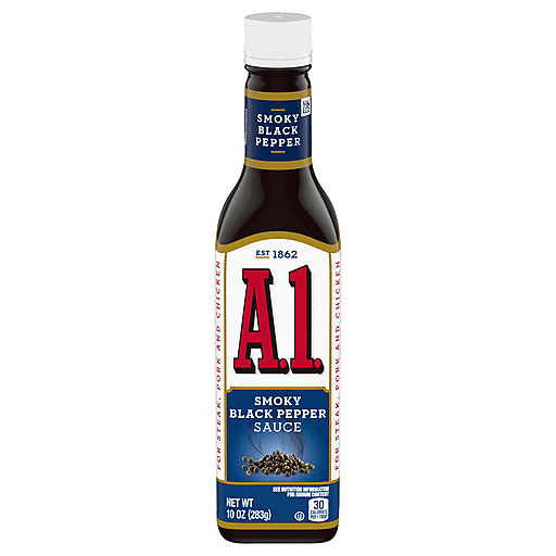 Transform your meals with the bold flavors of A1. With the classic A1 flavor you love and a smoky, peppery twist, our Smoky Black Pepper Sauce is the perfect complement to burgers, steak, chicken, pork, vegetables and more! Our steak sauce is blended with traditional black pepper, tomato paste, garlic, onion and crushed orange puree, with an added smoke flavor. Use our smoky and tangy sauce as a marinade, brush it on while grilling your preferred protein or pour it on your entrée for a boost of flavor. Ideal as a dipping sauce, you can also try adding our delicious sauce to your family’s recipes. Each 10-ounce glass bottle is resealable Whether you use it as a sauce or a marinade, A1 adds delicious flavor to all of your family favorites.