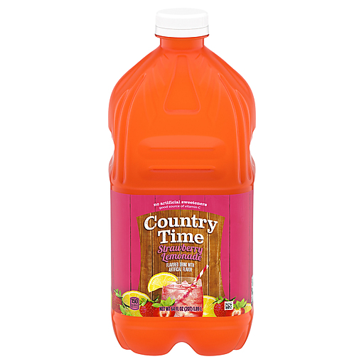 It’s Country Time all the time with a multi-serve bottle of Country Time Strawberry Lemonade Artificially Flavored Drink. Our Country Time Strawberry Lemonade Drink combines the great taste of summer, old-fashioned lemonade, and a burst of berry flavor to give you a sweet and tart refreshment that will leave you smiling. A good source of vitamin C and made without artificial sweeteners, our ready-to-drink flavored strawberry lemonade drink helps you turn life’s lemons into delicious lemonade. From serving at your child’s first lemonade stand to sharing a pitcher of lemonade with friends on a sunny day, our strawberry lemonade is ideal for making lasting memories with those you love. Bottled in a recyclable and resealable easy-pour container for convenience, each 64-fluid-ounce bottle has about 5 servings of refreshing lemonade. So kick back and enjoy the simple taste of summer with an ice-cold glass of Country Time Strawberry Lemonade Drink.