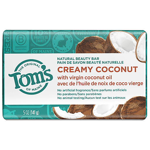 Gently clean your skin while helping maintain its natural moisture with Tom's of Maine Natural Beauty Bar Soap. The natural soap formula features organic botanicals like virgin coconut oil, raw shea butter or Moroccan argan oil. Breathe in the indulgent fragrance of Creamy Coconut with every wash. Order Tom's of Maine bar soap and try their other natural personal care products.